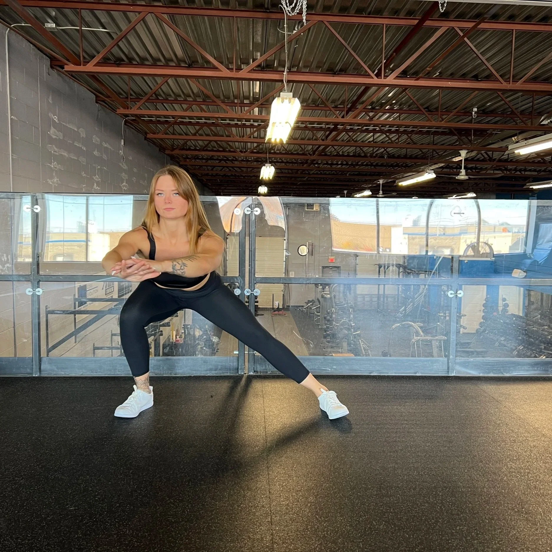 A side-to-side squat variation that strengthens the legs while building mobility in the hips and adductors. Unlike a traditional squat, you shift your weight onto one bent leg while keeping the other leg straight, then return to center.
